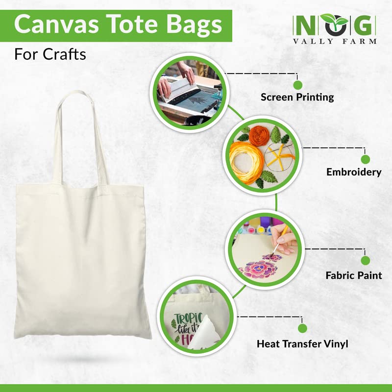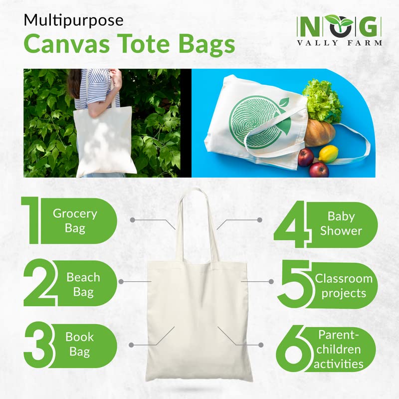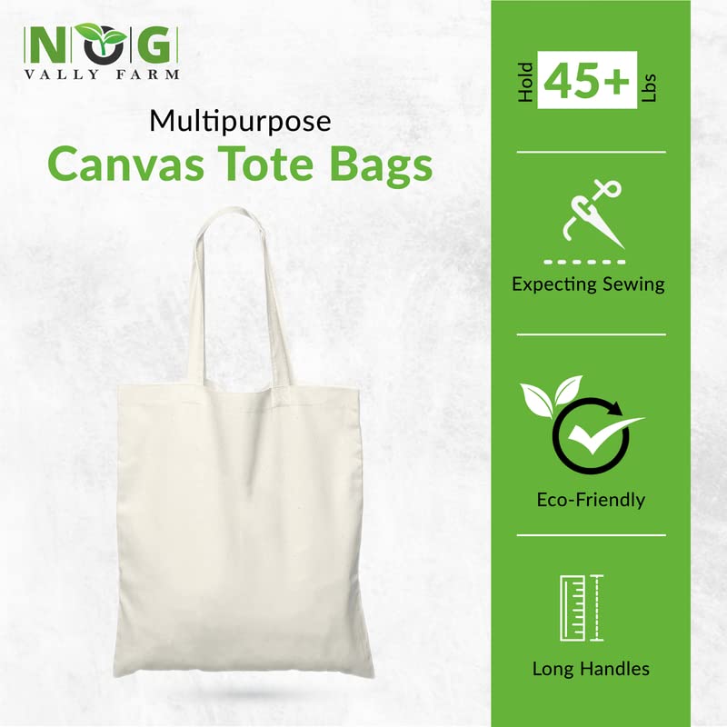 Nog Vally Farm Natural Cotton Plain Tote Shopping Bags 8oz Fabric Hold 45 Lbs Heavy Duty Washable Eco Friendly Biodegradable Canvas Bag Pack Of 10 Amazon In Bags Wallets And Luggage