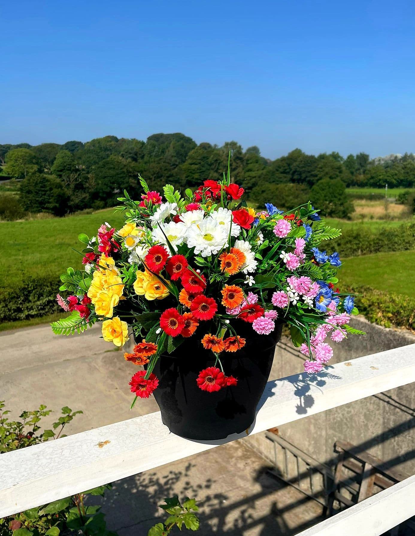 30cm Black Patio Pot Outdoor Artificial Flowers Wild Flower Mix